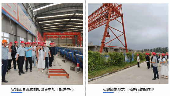 紧接着技术负责人耐心为实践团讲解了泗洪梁场,技术团队通过PPT演示与工程实景视频,系统展示了梁场的标准化建设成果,从钢筋加工自动化生产线到预制梁智能浇筑设备,全方位呈现了现代梁场“高效、精准、绿色”的生产理念。