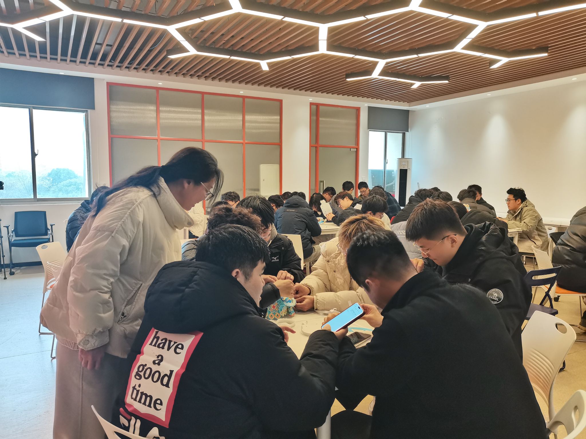 本次活动内容丰富、形式多样,师生们在互动中感受节日的浓厚氛围。活动伊始,DIY花灯比赛正式拉开帷幕,同学们提前分为8个小组,各展所长、通力合作,制作出一盏盏漂亮的花灯。制作完成后,刘志峰院长结合美观性、趣味性、构图设计等多个维度,对8组花灯进行点评,最终评选出"最美花灯"获奖小组,杨如丽书记为获奖团队颁发了奖品。花灯评比结束后,活动现场暖意融融。杨书记亲自下厨,为同学们煮上热气腾腾的元宵,一碗碗软糯香甜的元宵端到学生手中,大家边品尝美味,边畅谈学习生活,现场充满了欢声笑语。宋副院长则准备了兼具趣味性与知识性的灯谜,内容涵盖传统文化、学科知识、时事热点等多个方面,同学们踊跃参与抢答,猜对的同学获得了精美的奖品,将现场气氛推向高潮。