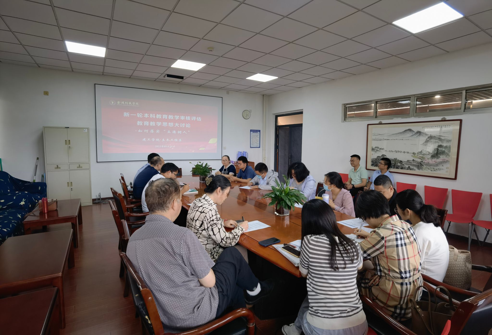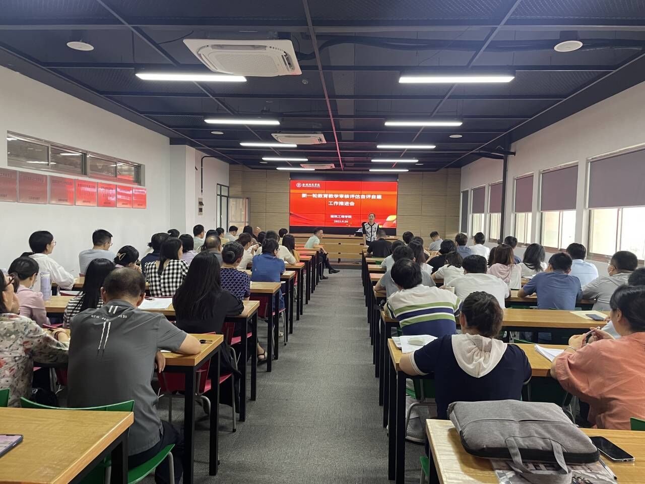 2023年9月20日下午,学院在工科楼B513会议室召开新一轮本科教育教学审核评估自评自建工作推进会,会议由刘志峰院长主持,全体教师参加会议。沈瑾书记对教育教学审核评估工作进行了总体要求。刘志峰院长就学院各专业如何落实立德树人、强化专业特色、创新人才培养模式和提升教师教学水平等方面进行了具体布置。黄冬辉副院长就教育教学审核评估的理念、指标和内涵建设同大家一起再次深入交流,详细介绍了学校教育教学思想大讨论活动工作方案,就我院大讨论活动的具体安排做了布置。会议结合本院评建实际情况,精心组织策划、有序落实相关工作。会议对近期课程试卷、毕业论文(设计)等教学档案材料专项检查整改工作进行了通报、布置和再落实。