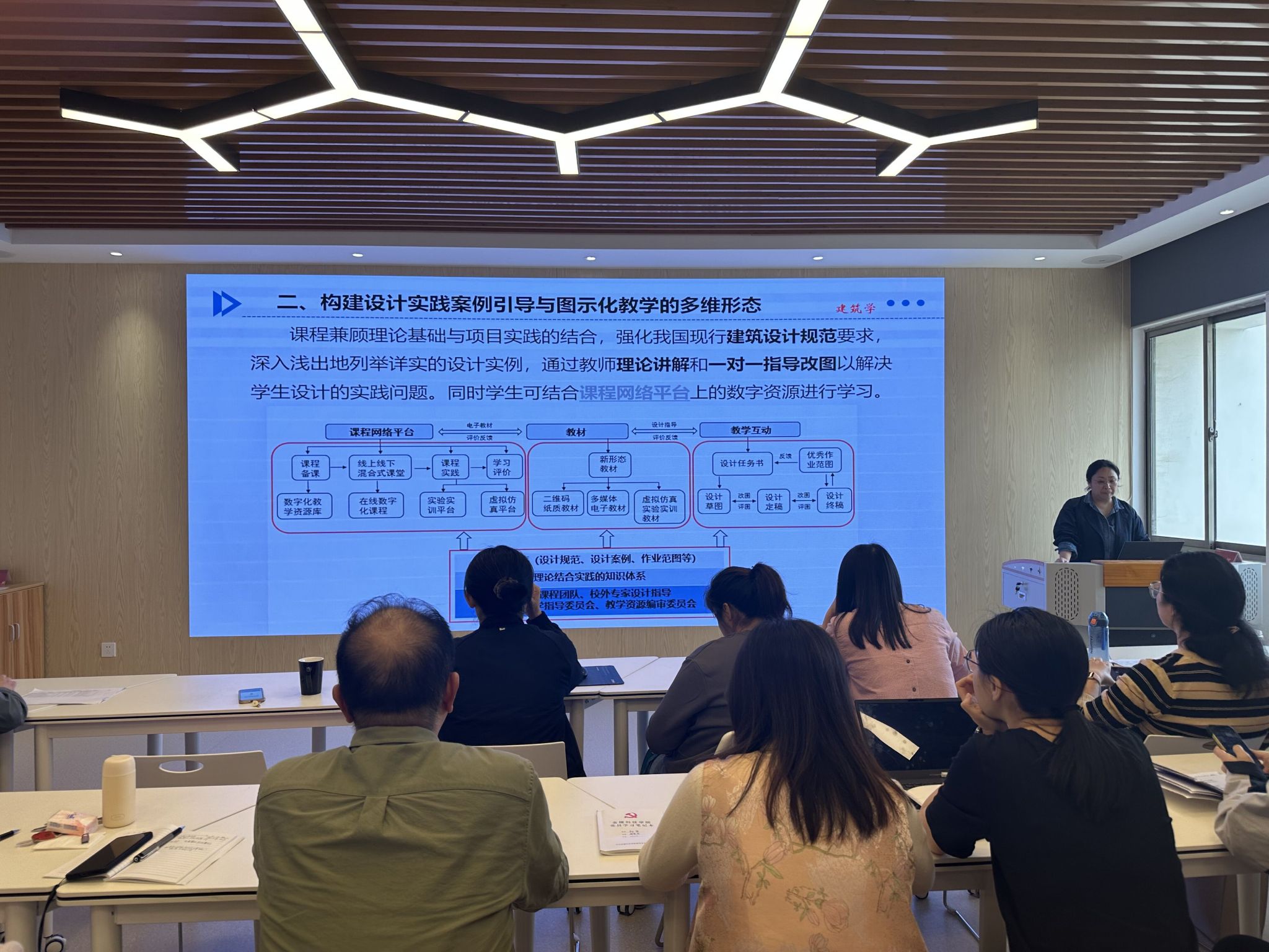 会议首先邀请马颖忆、韩颖等专业核心课程负责人介绍《人文地理学》、《建筑设计Ⅱ》等课程建设情况,几位老师重点分享了课程在教学内容、教学方法与手段、学生成绩评定等方面的改革与成效,达到相互交流、相互促进的目的。其后,老师们围绕“教学中心地位”如何体现展开了热烈的讨论。大家一致认为教学工作能否成为中心,其根本在于教学自身水平的提高。特别是在当前建筑行业下行的不利形势下,如何以学生为主角,激发学生学习兴趣,充分发挥学生的能动性,是对教师教学的大考验。老师们也充分认识到,在信息技术高速发展的新时代下,必须具备现代教育观念,探索新的教学方法并将其运用到教学实践中;同时要平衡好教学与科研工作,利用前沿科技创新项目不断提高学科知识和教学水平。