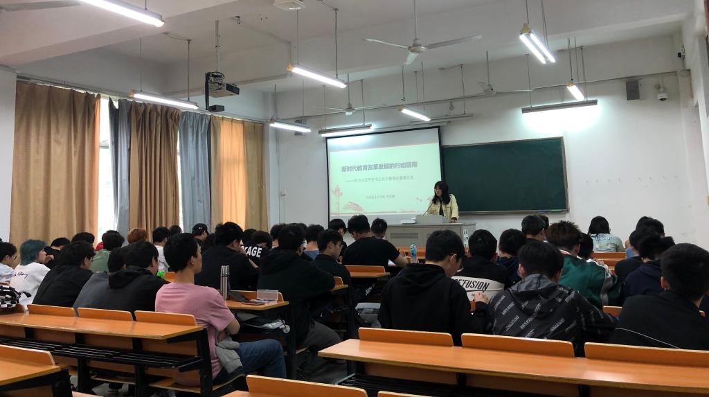 李美娴老师以“新时代教育改革发展的行动指南”为主题,围绕教育是国之大计、党之大计;坚持优先发展教育事业;培养德智体美劳全面发展的社会主义建设者和接班人三个重点进行了讲解,特别强调同学们要在加强品德修养、增长知识、增强综合素质等方面下功夫。