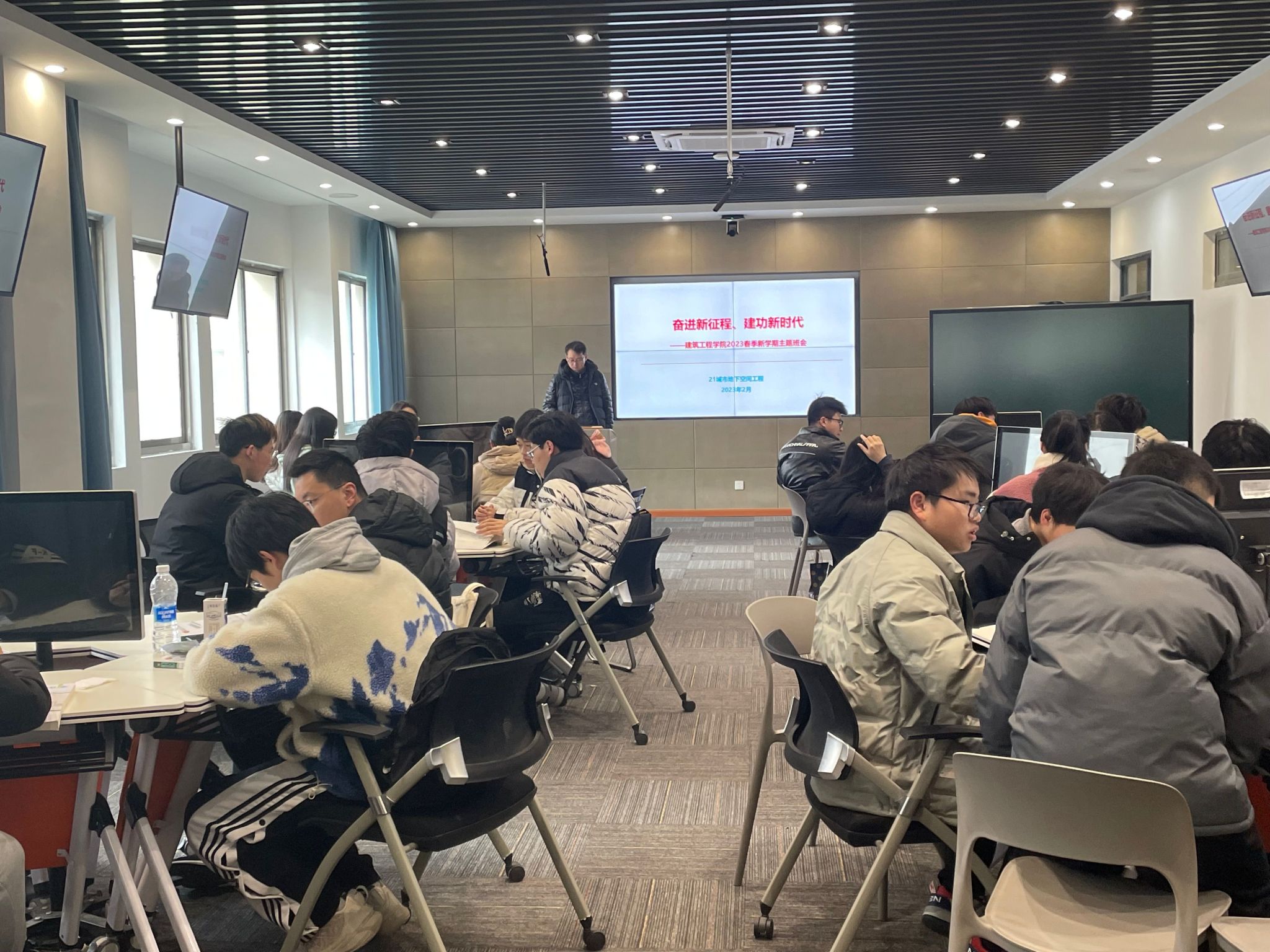 各班主任带领学生客观、全面分析本班上学期学习情况,认真分析上学期学风建设中存在的问题,研究具体改进措施,引导学生从之前的网上学习状态调整到紧张、活泼的校园生活状态,努力提升学生专业素质和理论水平,端正价值追求,让建工学子的葳蕤青春在奋力谱写特色鲜明的高水平新兴应用型大学建设新篇章和全面建设社会主义现代化国家的火热实践中绽放。