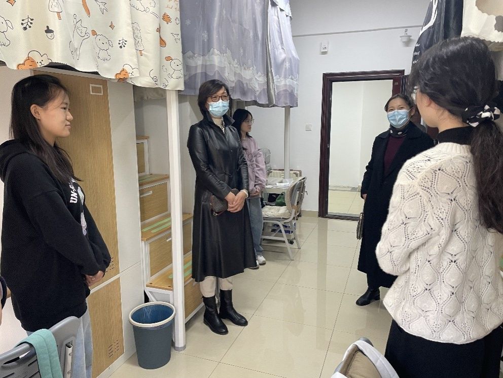 倪校长来到北区04宿舍,与同学们进行了亲切的交流,了解学生在校的生活及学习情况,就学业进展、未来规划和同学们进行了深入交流。倪校长勉励大家珍惜时光,勤勉学习、热爱生活,通过不断学习逐步增强自身知识储备,并合理规划时间,逐步实现个人目标。