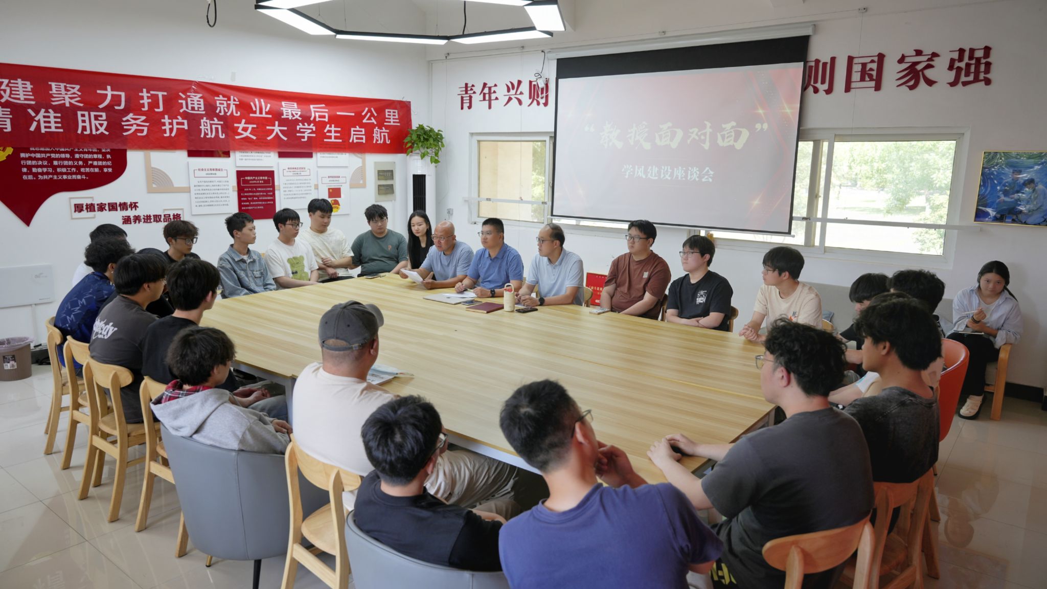 为进一步加强学风建设,促进人才培养水平的不断提高,深入了解学生学习情况,WilliamHILL中国于5月29日在南区08栋“一站式”学生社区举办“教授面对面”学风建设座谈会。学院党委副书记郑庆秋、副院长黄冬辉、教务臧靖、辅导员濮香玉以及22级学生参与。