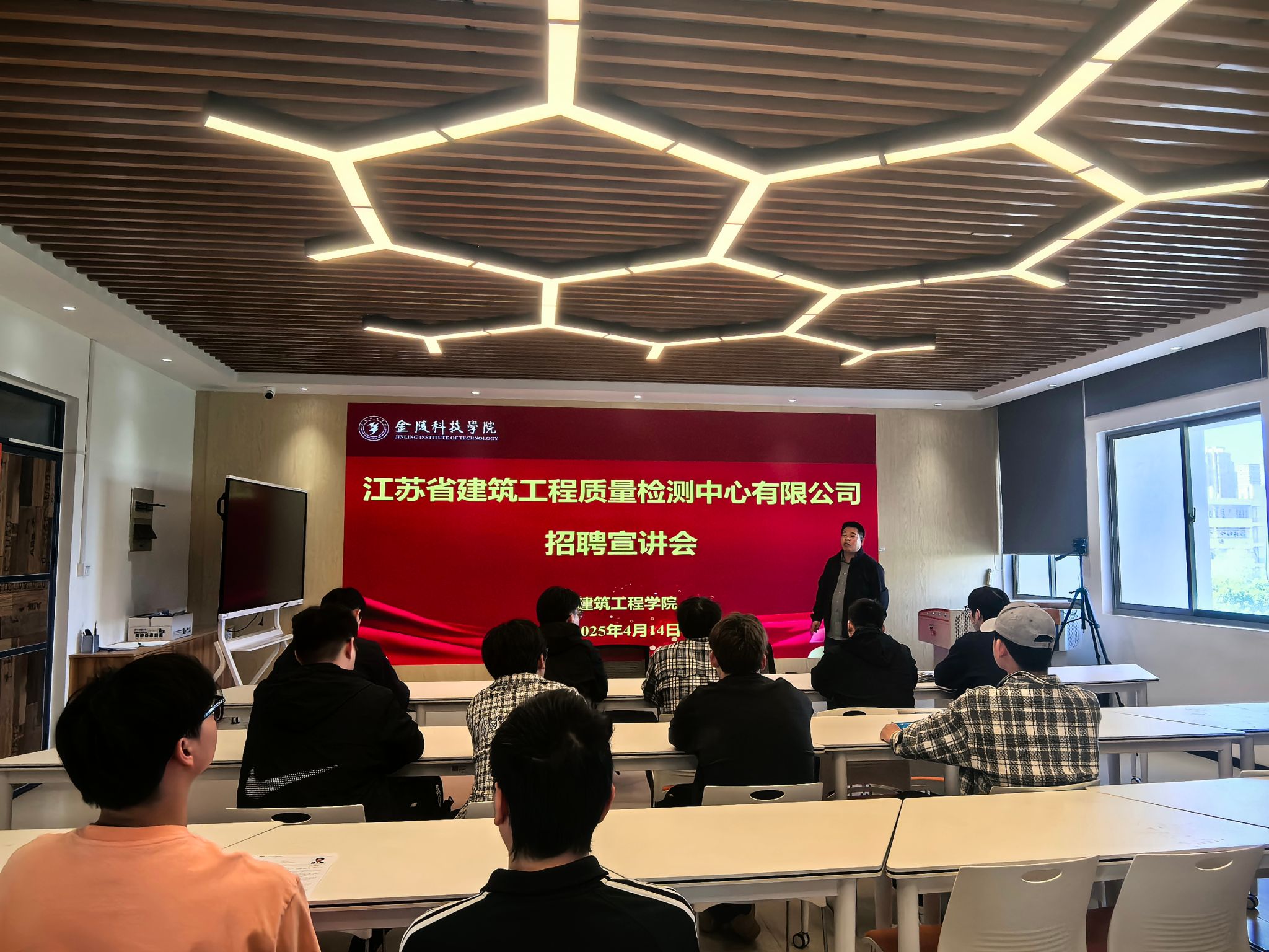 江苏省建筑工程质量检测中心有限公司是江苏省内权威的建筑工程质量检测机构,具有国家一级检测资质,业务涵盖工程质量鉴定、材料检测、绿色建筑评估等领域。宣讲会上,公司副总工程师、结构一部主任袁小军通过宣传片、PPT展示等形式,详细介绍了企业发展历程、技术实力、行业地位及未来战略规划。他强调,公司作为行业标杆,始终注重技术创新与人才培养,期待与建工学子携手推动建筑行业高质量发展。 本次招聘面向土木工程、工程管理、城市地下空间工程等专业毕业生,提供检测工程师岗位2人。他重点解读了岗位要求、晋升通道及薪资福利体系。互动环节中,学生们围绕职业发展、岗前培训、工作地点等问题踊跃提问,他结合自身经历逐一解答,并给予求职建议。会后,他对学生简历进行初步筛选,并现场面试。