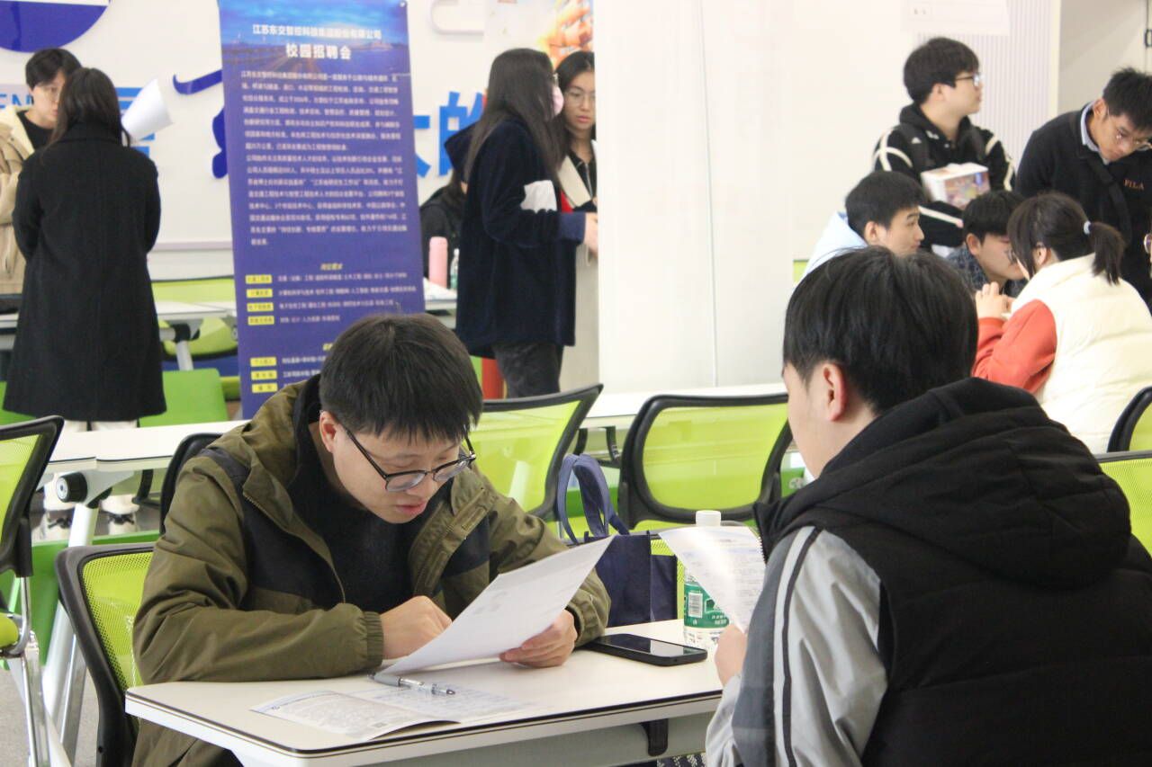 招聘会上,就业干事鲍老师到现场指导,与招聘企业和应聘学生亲切交谈,了解企业用工需求和学生就业意向,鼓励学生积极投递简历,勉励同学们树立正确的实习观、就业观和择业观,结合自身特长和职业生涯规划,瞄准目标,充分展示个人优势,提升与实习就业单位岗位的匹配度,从容自信面试。此次招聘会共邀请中国江苏国际经济技术集团有限公司、第五建设分公司,上海宝冶集团有限公司、中铁大桥局集团第四工程有限公司、江苏省交通工程集团有限公司、南京同力建设集团有限公司、南京市路桥工程有限公司、南京国豪装饰安装工程股份有限公司、南京金中建幕墙装饰有限公司等18家企业,此次招聘会获得校友企业的大力支持,有12家校友企业参会,招聘企业共提供400多个工作岗位。