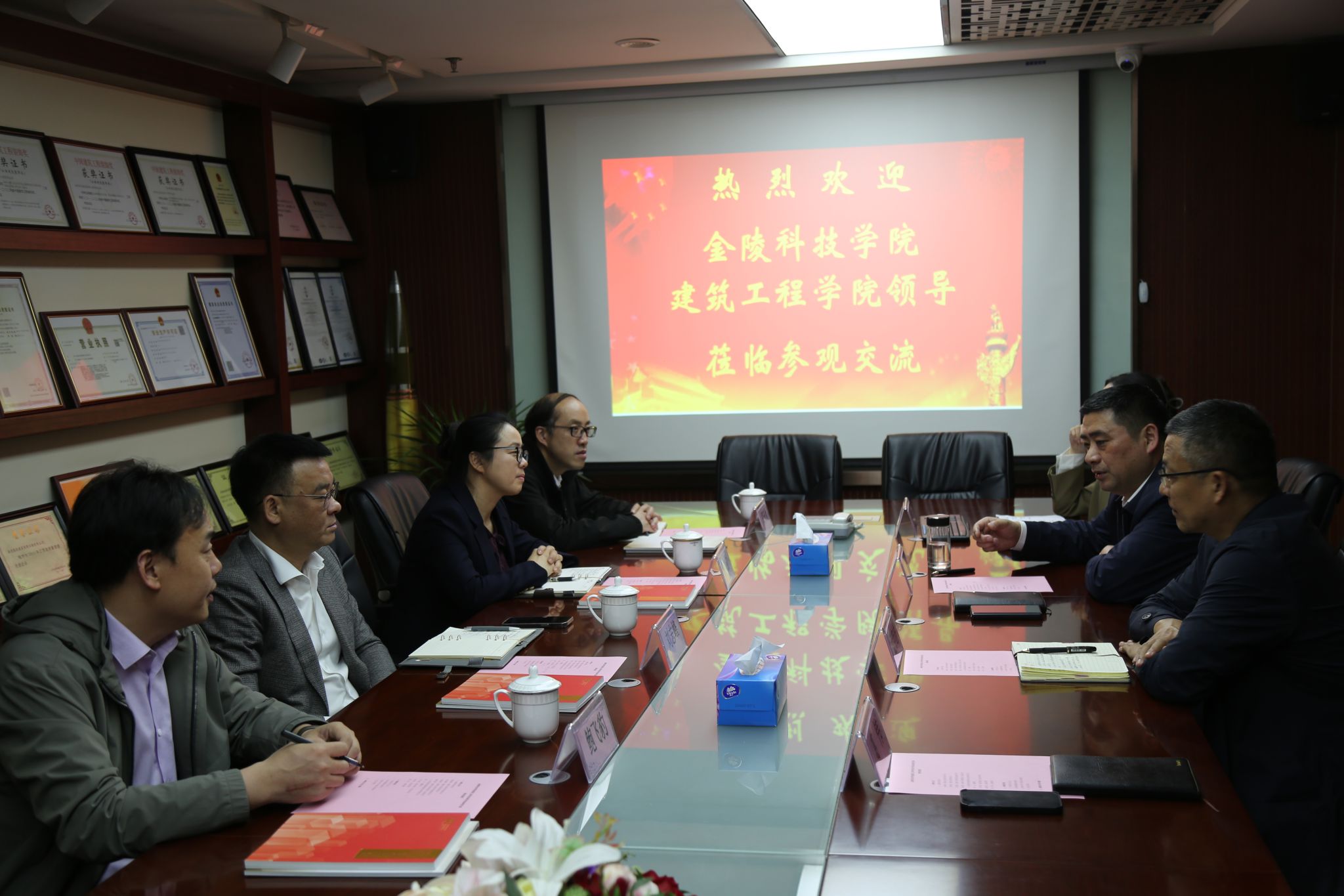 会上,刘志峰介绍了学院历史沿革、师资队伍、专业设置、本科生人才培养与就业、研究生教育等情况,希望通过此次交流能够与南京凯风建筑装饰工程有限公司在毕业生实习、就业、科研合作等方面建立起良好的合作关系。杨如丽书记高度赞扬了企业在党建方面取得的成绩,希望校企双方以此次走访为契机,瞄准建筑行业的新需求,发挥双方优势,不断深化党建引领、强化校企合作。周云董事长详细介绍了公司业务区域、经营状况、企业文化建设和人才培训培养等方面的情况,并表示非常欢迎与学院开展更深入的合作,共同推动建筑行业的发展和人才的培养。相信通过校企合作,可以实现资源共享、优势互补,共同培养出更多优秀的人才,为社会的繁荣和发展做出更大的贡献。