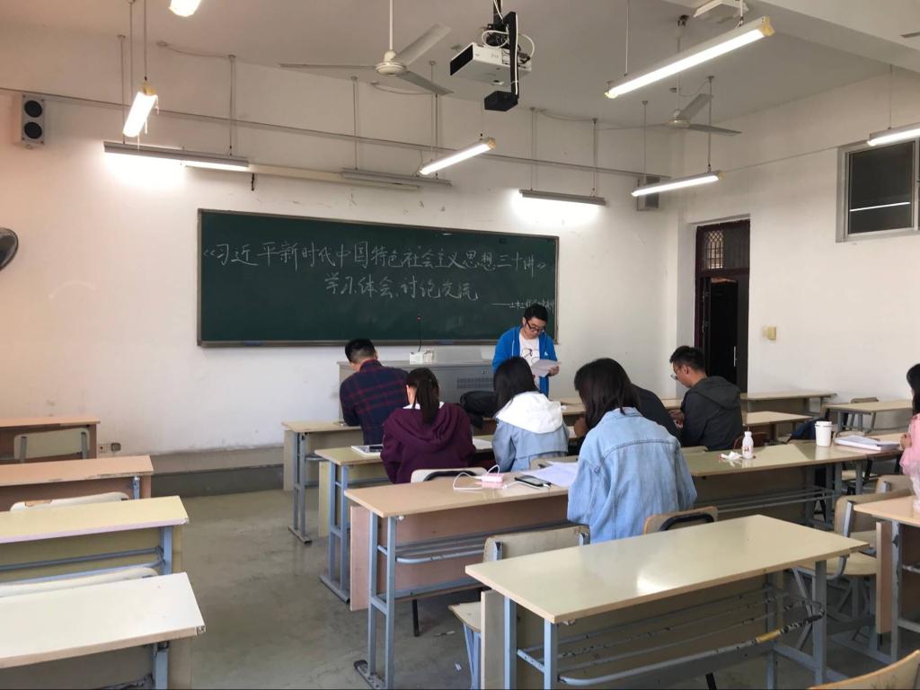 首先,各师生党支部支部书记带领全体党员学习了《习近平新时代中国特色社会主义思想三十讲》原文;随后,所有师生党员围绕《习近平新时代中国特色社会主义思想三十讲》结合自身工作进行了交流发言;最后,各党支部党员通过“江苏先锋”远程教育微信平台,完成了《习近平新时代中国特色社会主义思想三十讲》第一讲(上下)的学习。