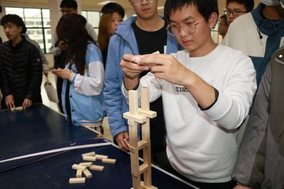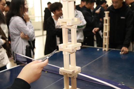 在积木建模大赛中,考验的是同学们对结构的理解,通过对结构的分析,将积木条搭建的又高又稳,最终赢得比赛。在比赛的过程中,时常听到高楼建起的欢呼,还有高楼倒地的叹息。但是无论是哪一种声音,都是团队合作的结果,都激励着我们努力向上。