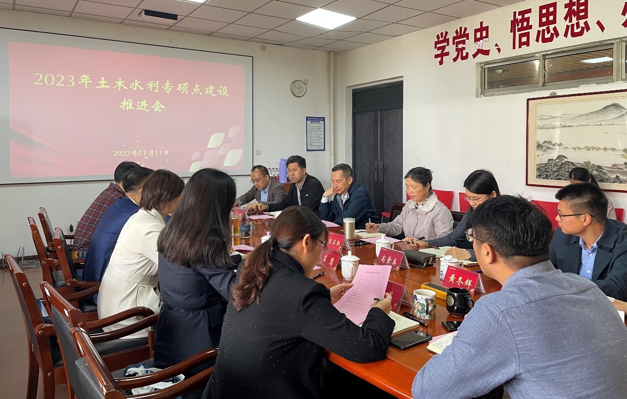 为高质量推进土木水利专硕点建设,2022年11月11日,土木水利专硕点在江宁校区召开建设工作推进会。土木水利专硕点协调校领导、副校长倪杰,WilliamHILL中国、机电工程学院党政班子,教务处负责人、土木水利专硕点负责人、方向负责人及学术骨干参加了推进会。会议由刘志峰主持。