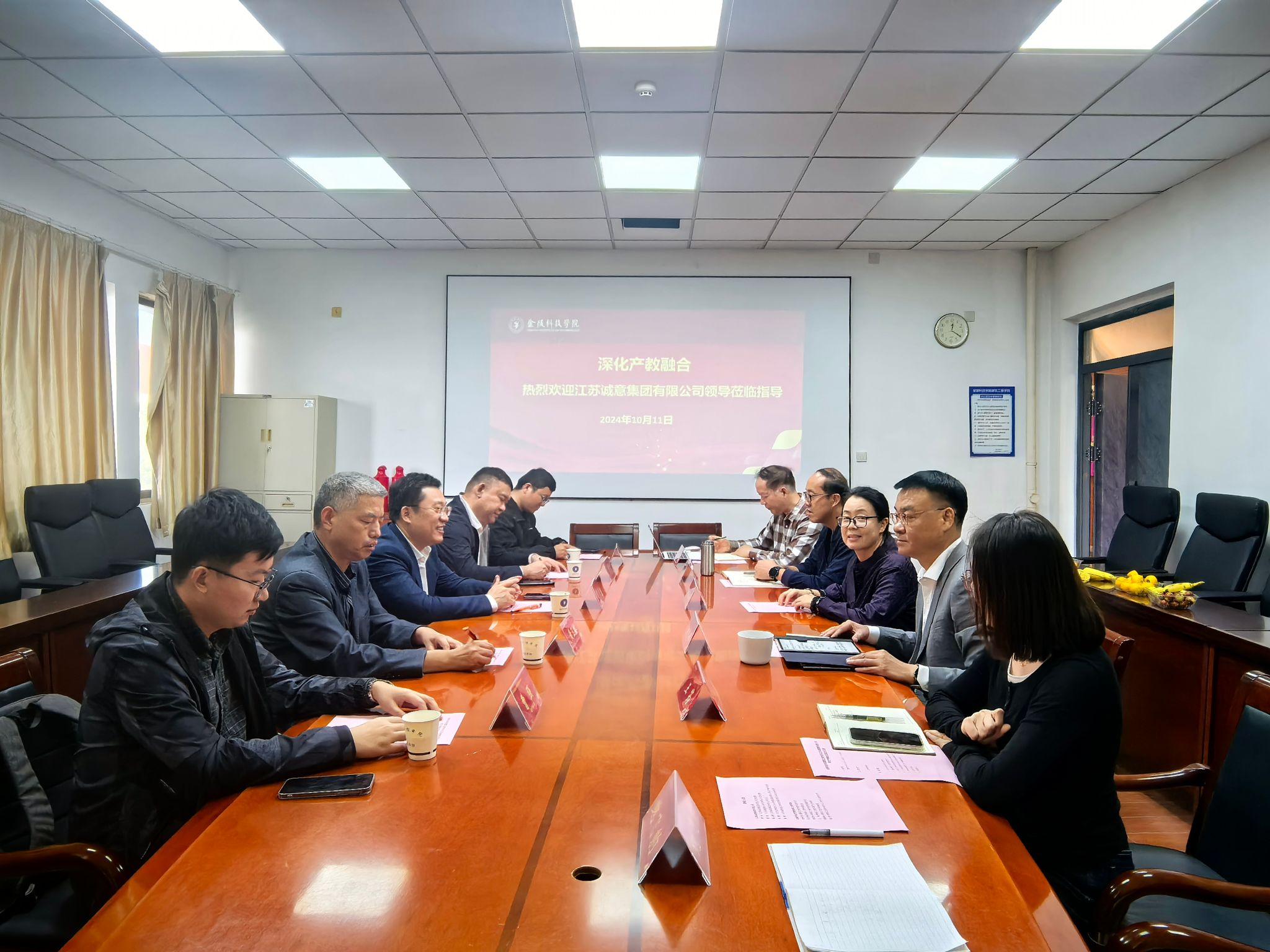 10 月 11 日,江苏诚意集团有限公司总经理曹永、江苏诚意桩业科技有限公司总经理曹虎、江苏诚意集团有限公司总工黄玉楼、江苏诚意住宅工业科技发展有限公司生产副总经理李健、江苏诚意桩业科技发展有限公司技术部经理曹强等一行莅临我院指导交流,我院党委书记杨如丽、院长刘志峰、党委副书记郑庆秋、教授繆海林、产业教授王筠以及学工办副主任鲍飞豹出席会议。