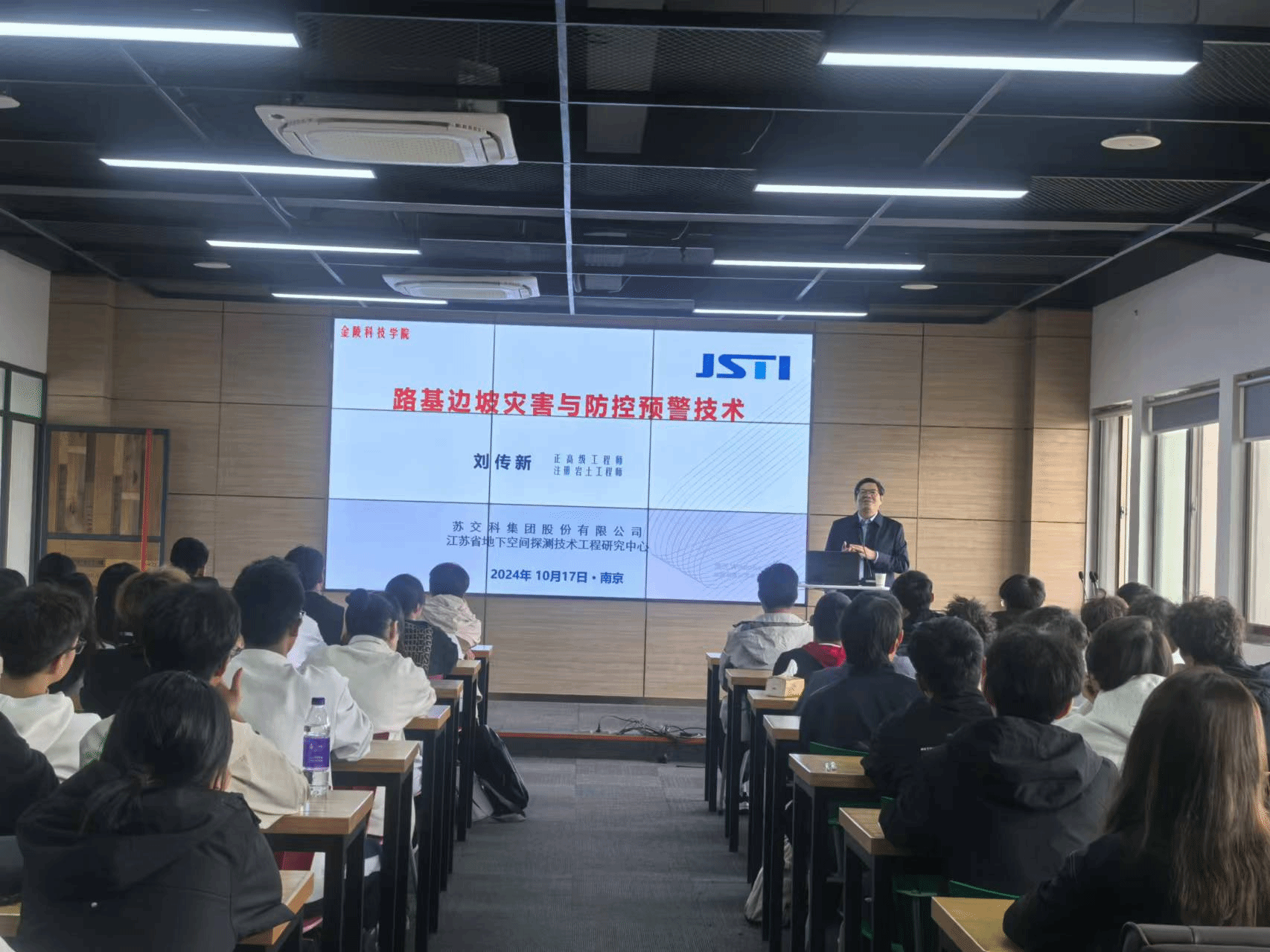 随后,刘传新教授为新生带来了一场精彩的专业教育讲座,题目为“路基边坡灾害与防控预警技术”。他结合实际工程案例,生动讲解了路基边坡灾害的成因、危害以及防控预警技术的重要性。他指出,随着城市化进程的加快,城市地下空间的开发利用将越来越重要,城市地下空间工程专业的学生将面临广阔的就业前景和发展空间。此次专业教育讲座让学生们对城市地下空间工程专业有了更清晰的认识,鼓励学生们树立了专业学习信心。