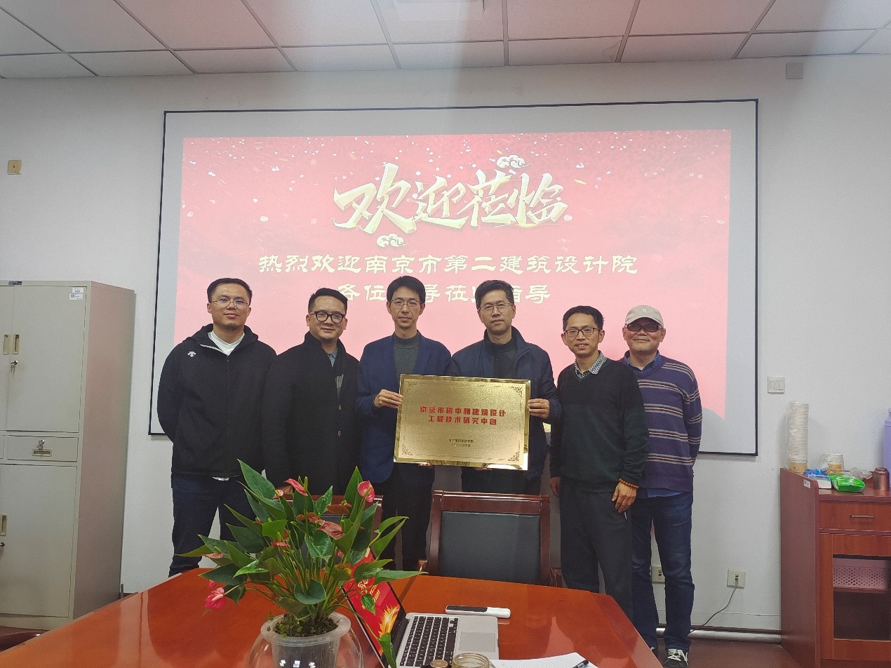 11月23日,南京市第二建筑设计院有限公司总经理邓文浩、副总经理刘弥、陈染一行莅临我院洽谈进一步开展产学研合作事宜,并举行“南京市碳中和建筑设计工程技术研究中心”挂牌仪式。我院梁献超副院长率领建筑系与实验中心相关老师参加交流活动。