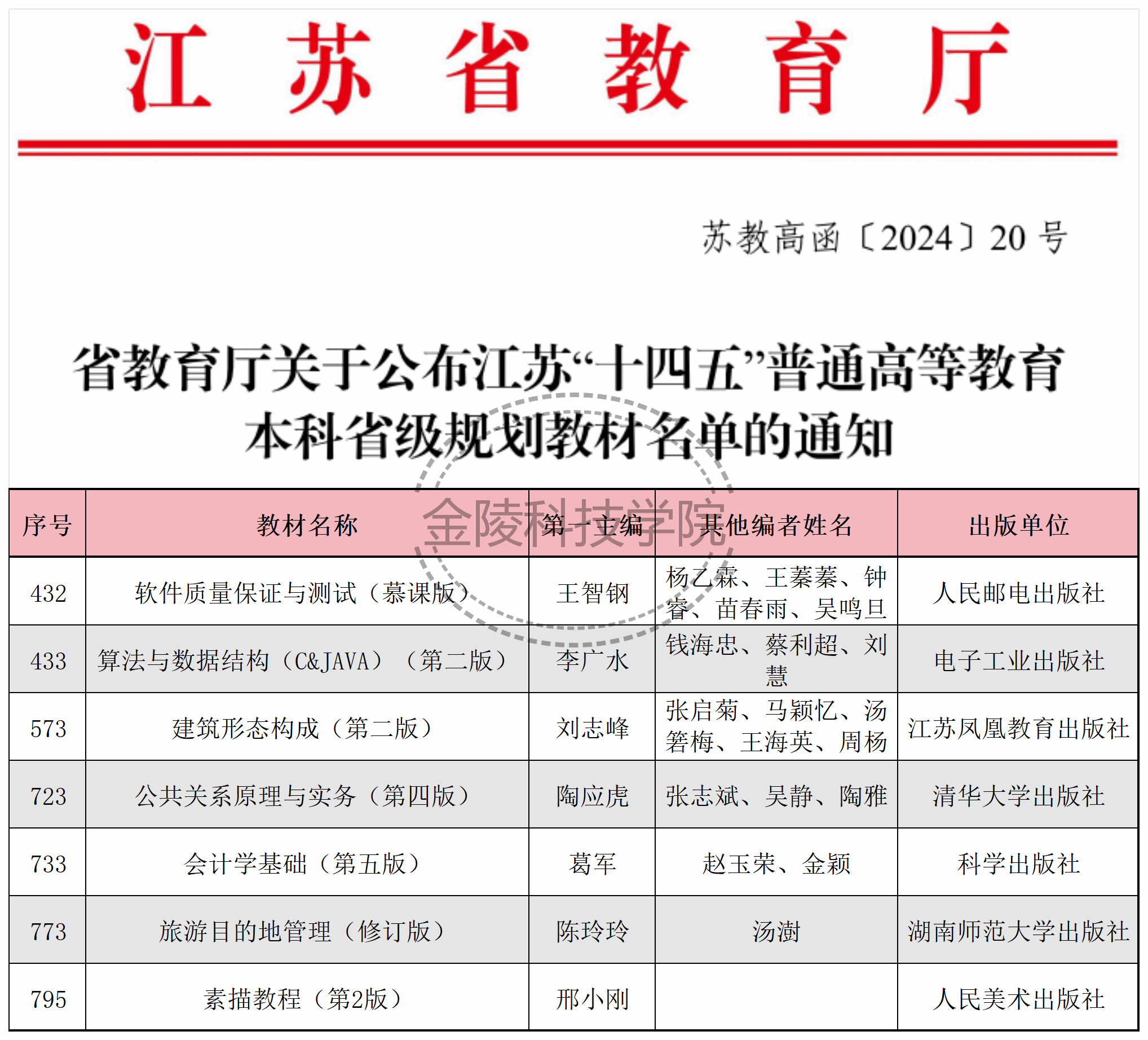 近日,江苏省教育厅发布《省教育厅关于公布江苏“十四五”普通高等教育本科省级规划教材名单的通知》(苏教高函〔2024〕20号),我院《建筑形态构成(第二版)》获批为江苏“十四五”普通高等教育本科省级规划教材。