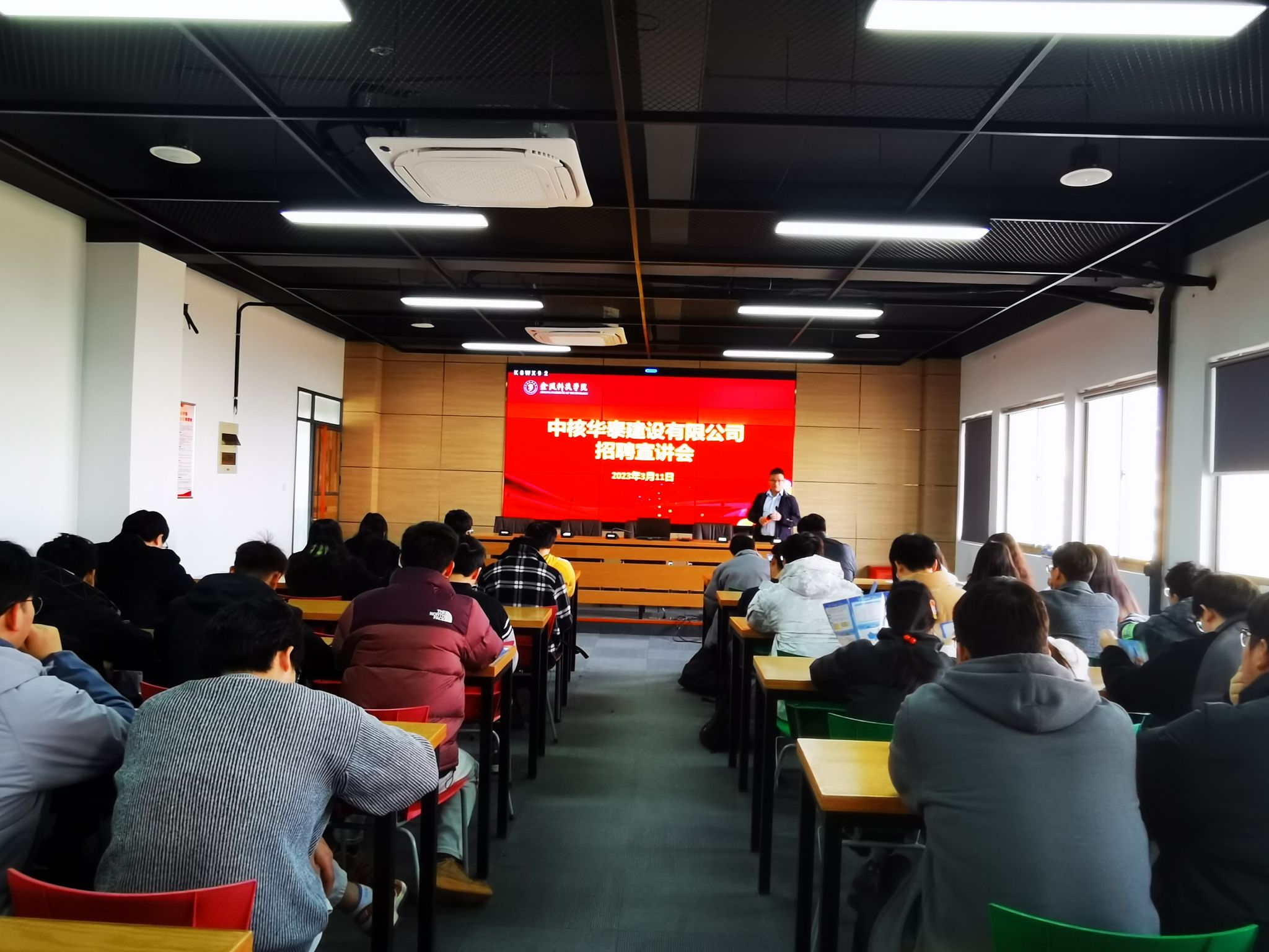 刘泽华助理介绍了企业发展历程、企业文化、科研成果、业务服务等情况,希望通过多种形式与学院深化合作,实现校企双赢。会后,刘助理进行了招聘宣讲会,介绍了企业基本情况、业务范围与发展、招聘岗位与要求、员工福利与发展等,分享了简历制作以及面试需要注意的事项,宣讲会结束后立即进行简历筛选并进行面试,最终有3位同学获得企业offer。