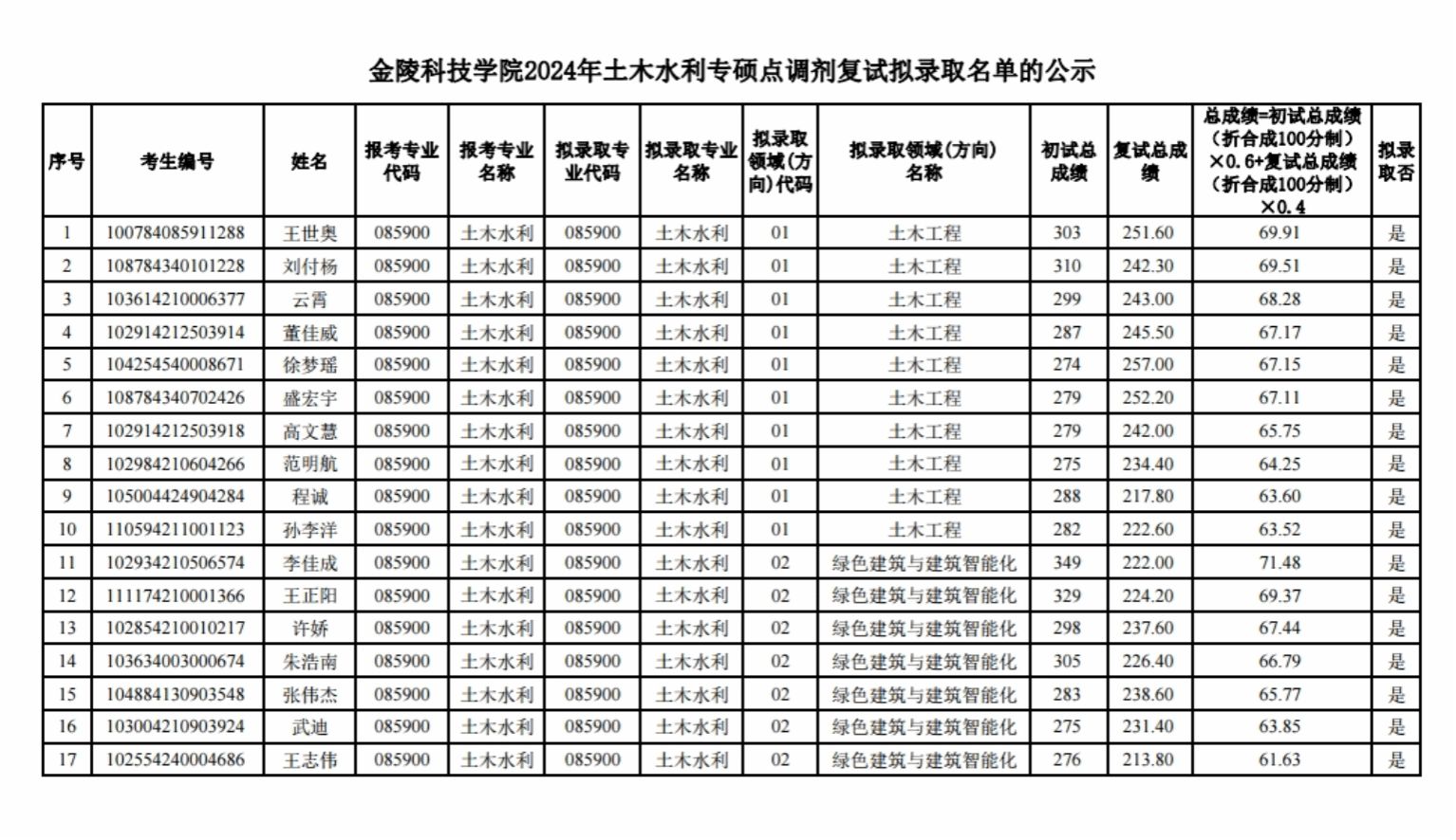附:williamhill2024年土木水利专硕点调剂复试拟录取名单的公示