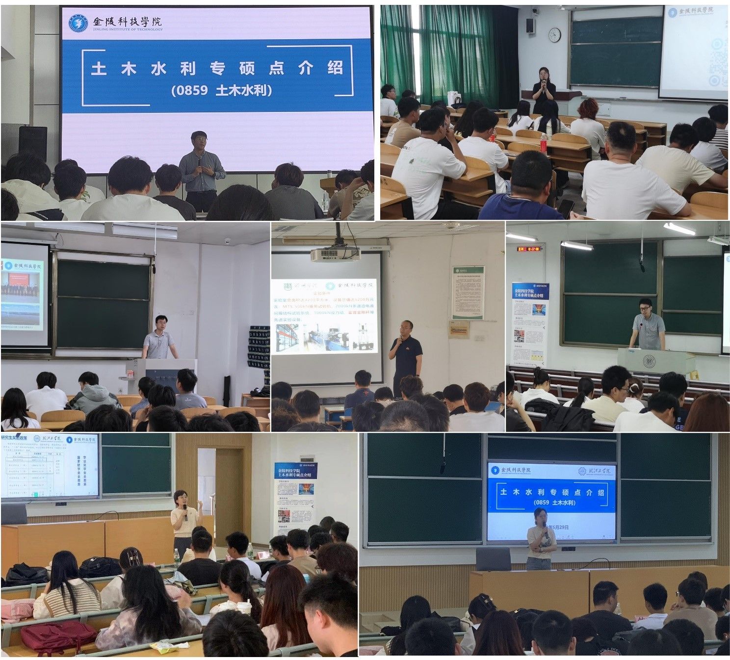 除依靠团队资源外,土木水利专硕点还借助学校研究生招生平台,在广陵学院、通达学院举办专场宣讲会2场,受众人数超过了200人,为扩大我校研究生教育的影响力、吸引优秀生源发挥了重要作用。“老师所言千句,难抵学长一人”,依托在读研究生的本科院校也是夯实招生宣传的关键抓手。土木水利专硕点首批外宣选择了三江学院、成贤学院和金城学院这三所学校,这也是研究生生源相对集中的本科院校。在这三所学校,研究生导师带着在读研究生现身说法,消除了外校考生对金科院的陌生感,提升了土木水利专硕点社会影响度。
